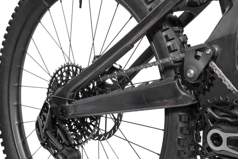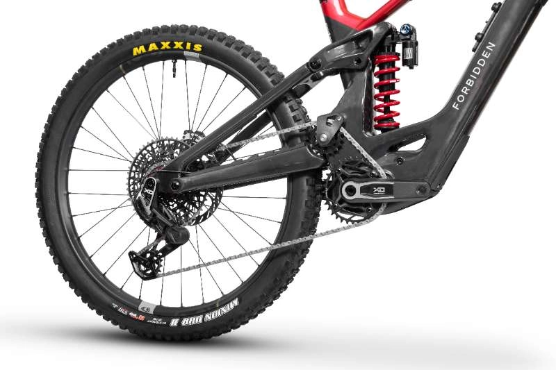 La suspension Trifecta V2 de Forbidden délivre un comportement rare : traversez les champs de rochers en mode plow avec les talons chargés, passez à l’attaque pour pomper ou sauter — la transition est immédiate. La trajectoire de roue arrière légèrement reculée absorbe sans compromettre l’efficacité au pédalage.