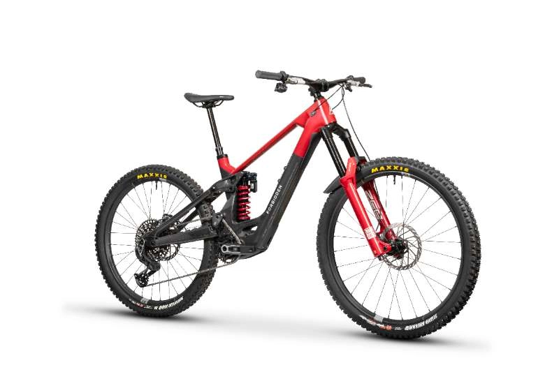 Le Dreadnought E Tier 1 représente le sommet absolu de la gamme Forbidden pour 2026. Sur une base commune à tous les Dreadnought E — cadre full carbone, cinématique Trifecta V2 High Pivot, géométrie MX roues mixtes — ce montage reçoit la sélection de composants la plus exigeante disponible.